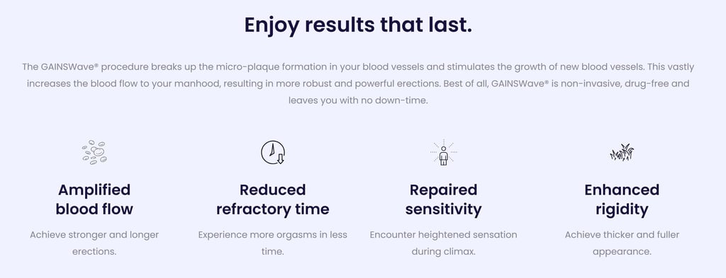 GAINSWave® is a clinically proven therapy with a remarkable success rate of over 75% for the treatment of erectile dysfunction and sexual disfunction in both men and women. This innovative treatment utilizes high-frequency, low-intensity sound waves to address sexual health concerns in both men and women.